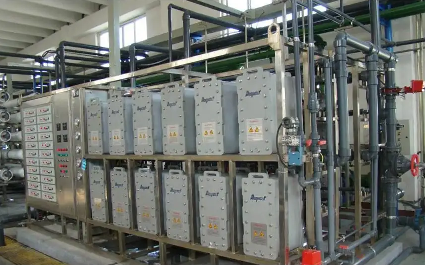 連續電除鹽技術,它科學地將電滲析技術和離子交換技術融為一體,通過陽、陰離子膜對陽、陰離子的選擇透過作用以及離子交換樹脂對水中離子的交換作用,在電場的作用下實現水中離子的定向遷移,從而達到水的深度凈化除鹽,并通過水電解產生的氫離子和氫氧根離子對裝填樹脂進行連續再生,因此EDI制水過程不需酸、堿化學藥品再生即可連續制取高品質超純水,它具有技術先進、結構緊湊、操作簡便的優點,可廣泛應用于電力、電子、醫藥、化工、食品和實驗室領域。這一新技術可以代替傳統的離子交換混床裝置,生產出電阻率高達10-17MΩ·CM的超純水。